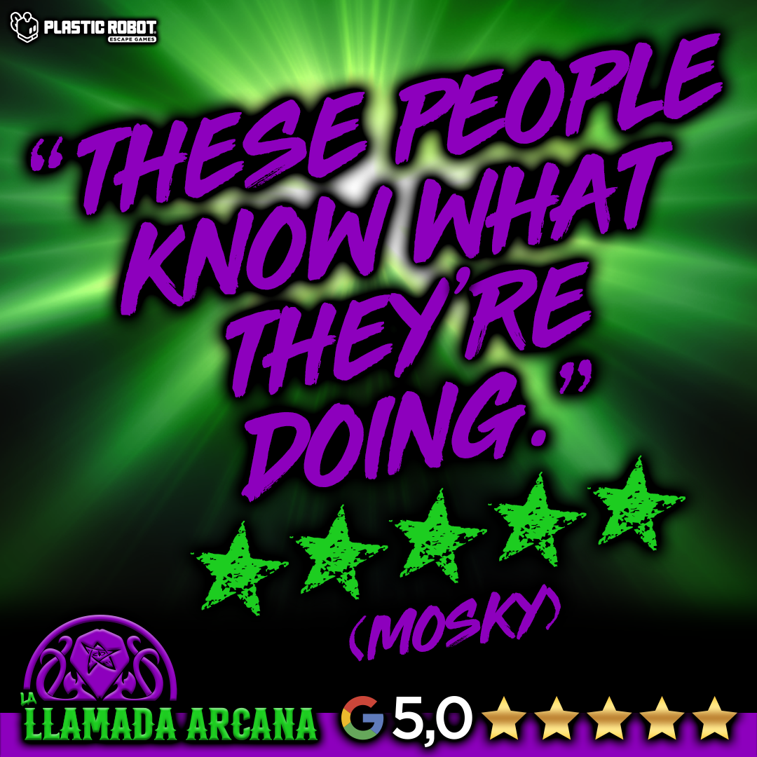 A Tense Escape Room (unlike a Horror Escape) is not designed to scare you, its goal is to keep you on edge. However, if you’re very easily frightened or highly suggestible, you might feel a bit of fear, of course 😛 In «La Llamada Arcana», you will encounter different characters throughout the game (both allies and enemies), but none of them are there to scare you. If you pay attention, you’ll always know when they will appear and how to interact with them.